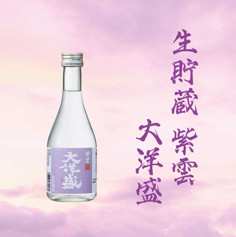 新酒の紫雲 大洋盛を加熱処理せず冷蔵貯蔵し、生熟成。その後、瓶詰め時一回火入れで仕上げた生貯蔵酒。